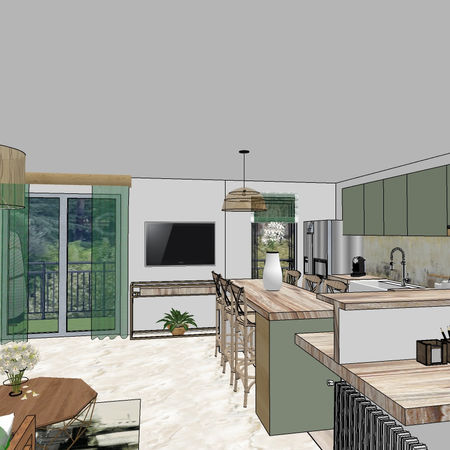 En supprimant plusieurs cloisons dans ce petit appartement nous avons pu créer un grand séjour ouvert et convivial, des toilettes indépendants et une vraie suite parentale intime et cocooning.